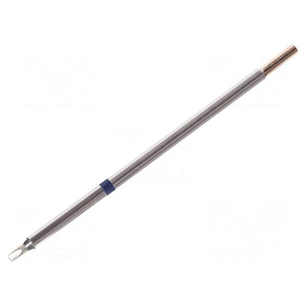 Grot lutowniczy typu wkrętak o szerokości 2,5 mm został zaprojektowany do współpracy ze stacjami lutowniczymi. Element charakteryzuje się wbudowaną grzałką, która zapewnia przekazywanie ciepła bezpośrednio do końcówki roboczej.