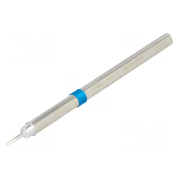Grot lutowniczy typu stożek z wbudowaną grzałką przeznaczony jest do wykorzystania w stacjach lutowniczych oraz lutownicach. Element charakteryzuje się precyzyjnym wymiarem końcówki wynoszącym 1 mm.