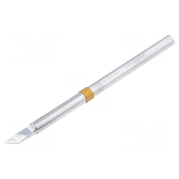 Grot lutowniczy z wbudowaną grzałką o kształcie noża charakteryzuje się wymiarami 4,5x6,5mm. Element ten został zaprojektowany do pracy w zakresie temperatur od 350°C do 398°C.