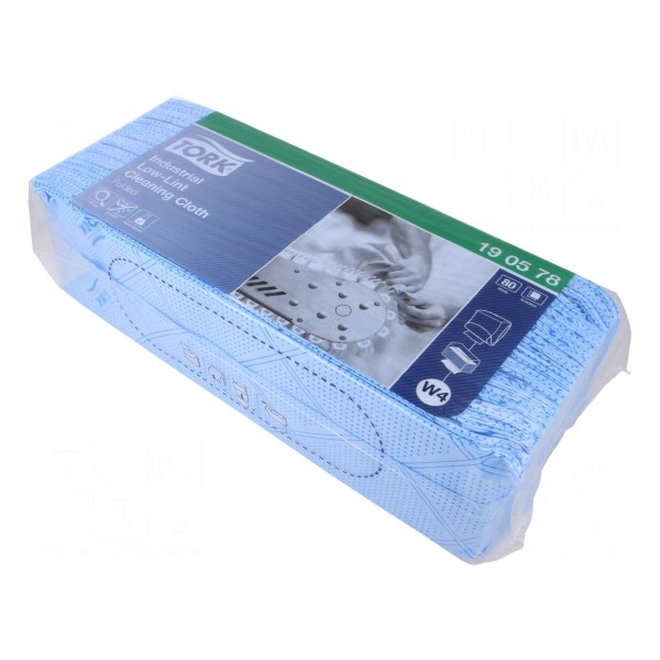 Czyściwo włókninowe marki TORK składa się z mieszanki poliestru i polipropylenu. Produkt w kolorze niebieskim jest dostarczany w opakowaniu zawierającym 80 sztuk arkuszy o wymiarach 324x390 mm.