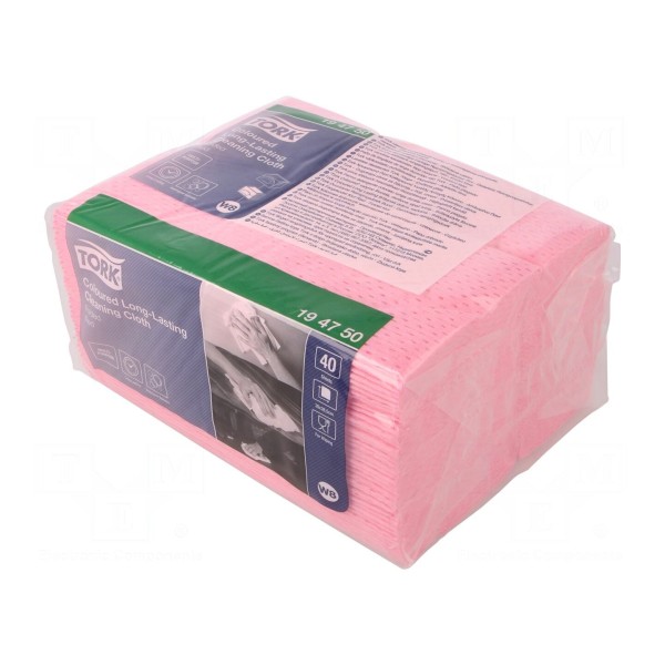 Czyściwo włókninowe TORK 194750 to produkt wykonany z mieszanki poliestru oraz polipropylenu, dostępny w formie suchej. Zestaw zawiera 40 sztuk listków o wymiarach 193x160 mm, zapakowanych w folię. Artykuł charakteryzuje się czerwonym kolorem oraz wysoką odpornością na rozrywanie.