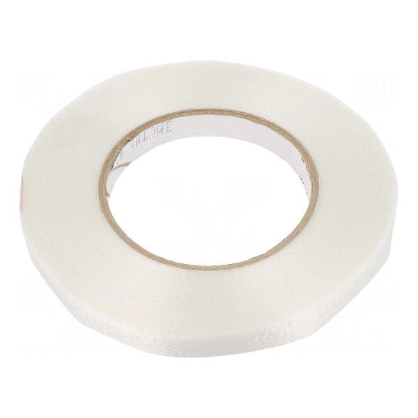 Elektroizolacyjna taśma 3M o szerokości 12 mm i długości 55 m wykonana została na bazie tkaniny poliestrowej wzmocnionej włóknem szklanym. Produkt wykorzystuje klej akrylowy, charakteryzujący się wytrzymałością temperaturową do 130°C. Całkowita grubość taśmy wynosi 0,165 mm.