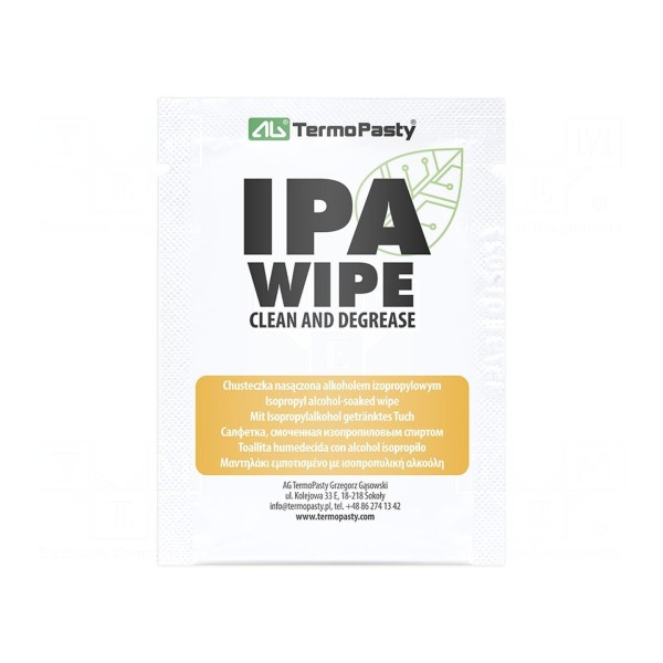 Czyściwo w formie ściereczek jest przeznaczone do usuwania zanieczyszczeń z elementów elektronicznych, urządzeń optycznych oraz podzespołów mechaniki precyzyjnej. Każda ściereczka o wymiarach 160x125 mm jest fabrycznie nasączona alkoholem izopropylowym o stężeniu 99,9%.