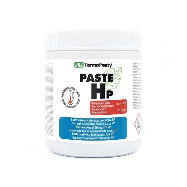 Pasta termoprzewodząca PASTA HP to środek na bazie silikonu, który ułatwia odprowadzanie ciepła pomiędzy podzespołami elektronicznymi a radiatorami. Preparat charakteryzuje się przewodnością cieplną na poziomie 1,5W/mK oraz stałą dielektryczną wynoszącą 5.