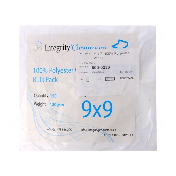 Czyściwo w formie suchych ściereczek wykonanych z poliestru przeznaczone jest do użytku w środowiskach o wysokich wymaganiach czystości, takich jak cleanroom klasy ISO 4. Każda ściereczka posiada gramaturę 120g/m² i wymiary 177,8x177,8mm. Opakowanie zawiera 200 sztuk produktu.