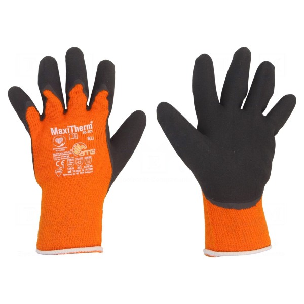 Rękawice ochronne 30-201/09 wykonane są w kolorystyce pomarańczowo-czarnej i dostępne w rozmiarze 9. Zostały zaprojektowane z myślą o zapewnieniu ochrony dłoni w warunkach wymagających zgodności z certyfikowanymi standardami bezpieczeństwa.