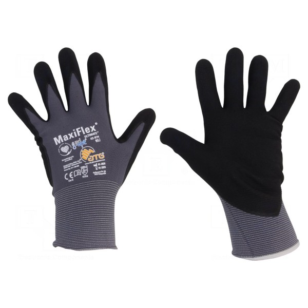 Rękawice ochronne przeznaczone są do ochrony rąk w środowisku pracy. Model ten występuje w kolorze szaro-czarnym i oferowany jest w rozmiarze 9. Produkt jest zgodny z normą EN 388:2016 + A1:2018 oraz posiada oznaczenie CE.