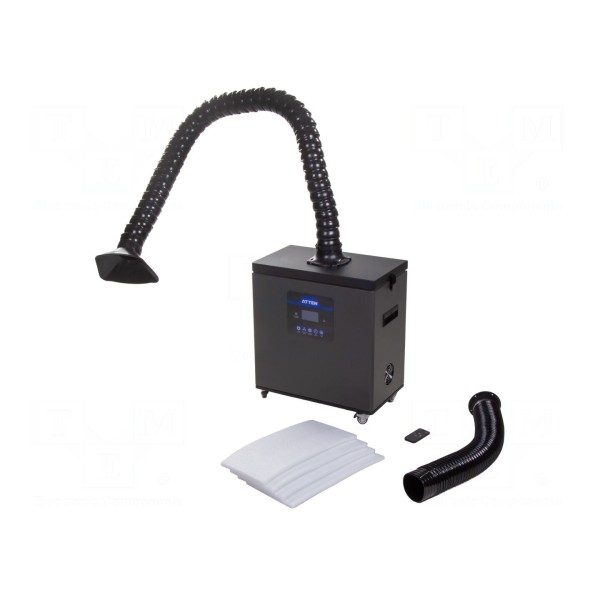 Urządzenie służy do efektywnego usuwania oparów powstających podczas procesów lutowniczych. Wyposażone jest w wydajny system filtracji, w skład którego wchodzą filtr główny, środkowy oraz wstępny, co zapewnia wysoką skuteczność oczyszczania powietrza. Sprzęt charakteryzuje się przepływem powietrza na poziomie 240m³/h przy mocy 160W oraz zasilaniu 230V AC.