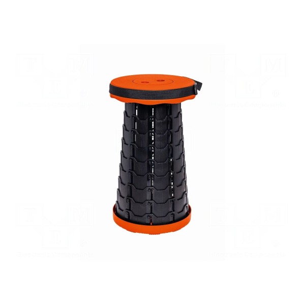 Stołek wykonany z polipropylenu charakteryzuje się składaną konstrukcją, co pozwala na oszczędność miejsca podczas przechowywania i transportu. Produkt umożliwia regulację wysokości w zakresie od 60mm do 460mm.