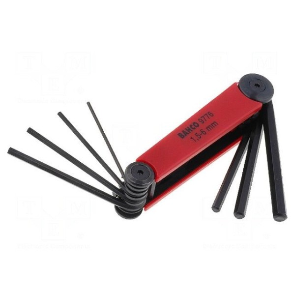 Zestaw kluczy typu imbus zawiera siedem narzędzi o rozmiarach HEX 1,5mm, 2mm, 2,5mm, 3mm, 4mm, 5mm oraz 6mm. Narzędzia zostały wykonane ze stali chromowo-wanadowej, co zapewnia parametry techniczne wymagane przy pracach montażowych i serwisowych.