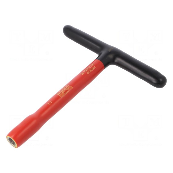 Klucz nasadowy izolowany BAHCO 28MV-11 wyposażony jest w gniazdo sześciokątne o rozmiarze 11 mm. Narzędzie posiada rękojeść typu T, która umożliwia wygodny chwyt podczas pracy.