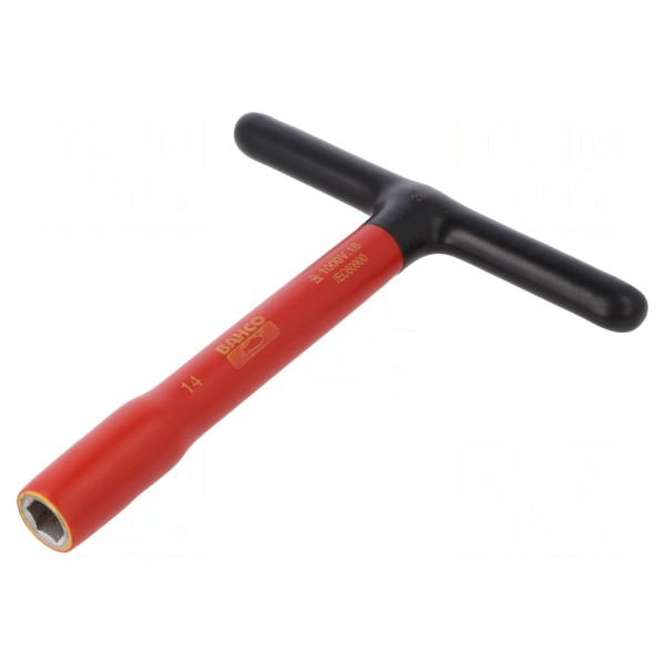 Klucz nasadowy izolowany typu T przeznaczony jest do prac pod napięciem do 1kV. Narzędzie wyposażone jest w gniazdo HEX o rozmiarze 14mm, co pozwala na obsługę śrub i nakrętek o tym standardzie. Konstrukcja wykonana jest ze stali stopowej, zapewniającej wytrzymałość mechaniczną podczas użytkowania.