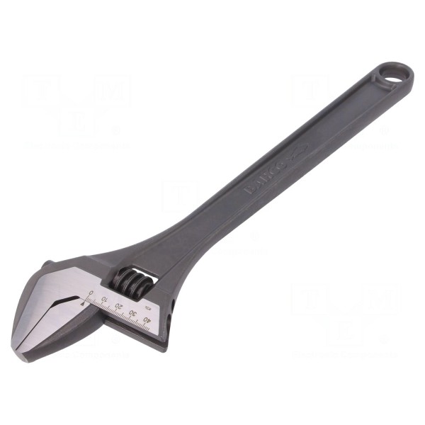 Klucz nastawny BAHCO 8074 charakteryzuje się maksymalnym rozwarciem szczęk wynoszącym 44 mm oraz całkowitą długością narzędzia 380 mm. Konstrukcja umożliwia obsługę elementów o różnych wymiarach w zakresie określonym przez parametry techniczne.