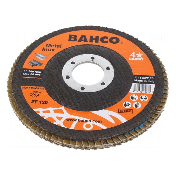 Tarcza szlifierska płatowa BAHCO 3927-115IM-P120 Tarcza szlifierska płatowa BAHCO 3927-115IM-P120 Tarcza szlifierska płatowa BAHCO 3927-115IM-P120