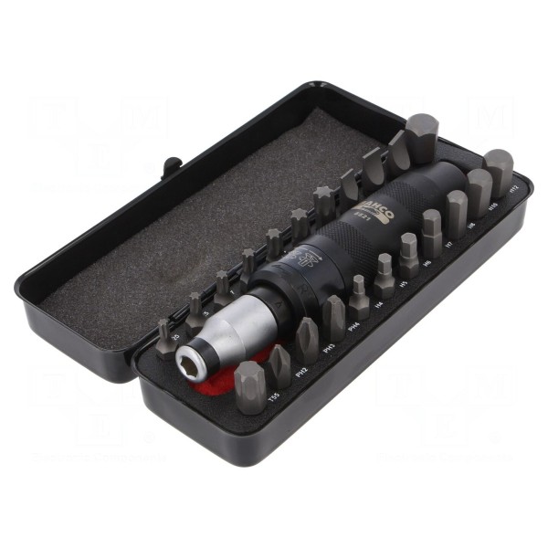 Zestaw wkrętaków udarowych do pobijania o liczebności 23 sztuk został zaprojektowany do prac wymagających przenoszenia znacznych sił udarowych. Narzędzia współpracują z uchwytami o rozmiarze gniazda 1/2" i charakteryzują się udarowymi właściwościami końcówek wkrętakowych.