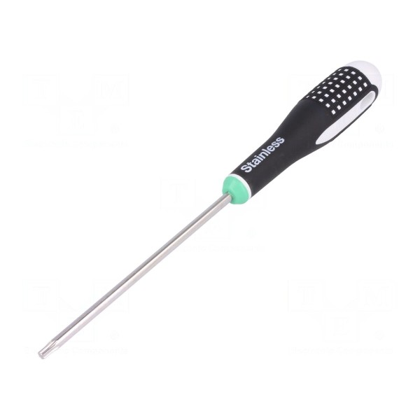 Wkrętak standardowy BAHCO o oznaczeniu modelu BE-8925I został wyposażony w grot typu Torx® w rozmiarze TX25. Ostrze o długości 125 mm wykonano ze stali nierdzewnej, co zapewnia trwałość oraz odporność na korozję podczas użytkowania.