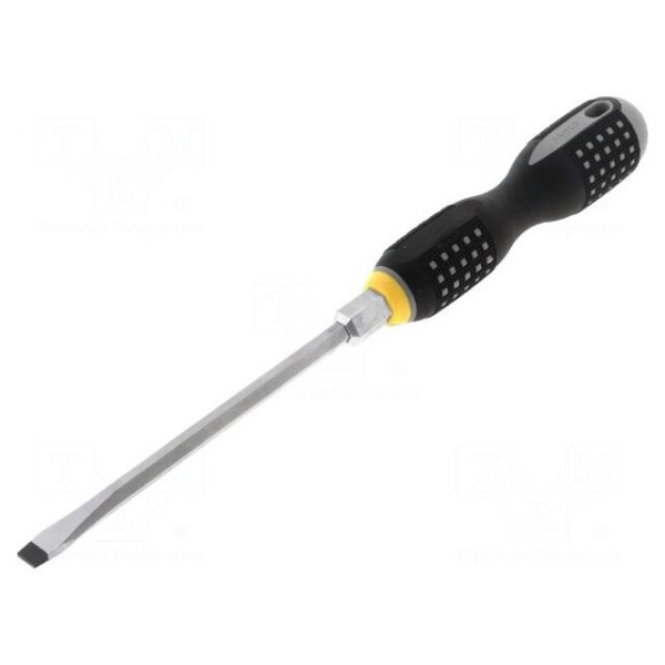 Wkrętak standardowy BAHCO BE-8870 wyposażony jest w płaski grot o rozmiarze 10x1,6 mm. Element roboczy wykonany został w sposób zapewniający odpowiednie dopasowanie do standardowych wkrętów z nacięciem płaskim.
