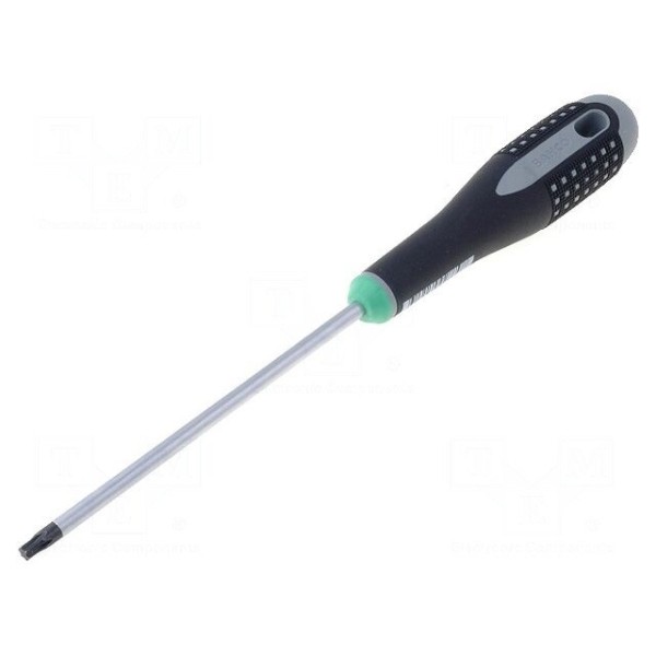 Wkrętak standardowy BAHCO BE-8925 został zaprojektowany do pracy z wkrętami typu Torx w rozmiarze TX25. Ostrze o długości 125 mm wykonano ze stali vanadium-extra, co zapewnia odpowiednią wytrzymałość elementu roboczego. Powierzchnia ostrza została poddana procesowi chromowania, a jego końcówka dodatkowo poddana czernieniu w celu zwiększenia funkcjonalności.