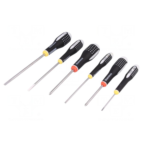 Zestaw 6 wkrętaków płaskich i Phillips, stal nierdzewna