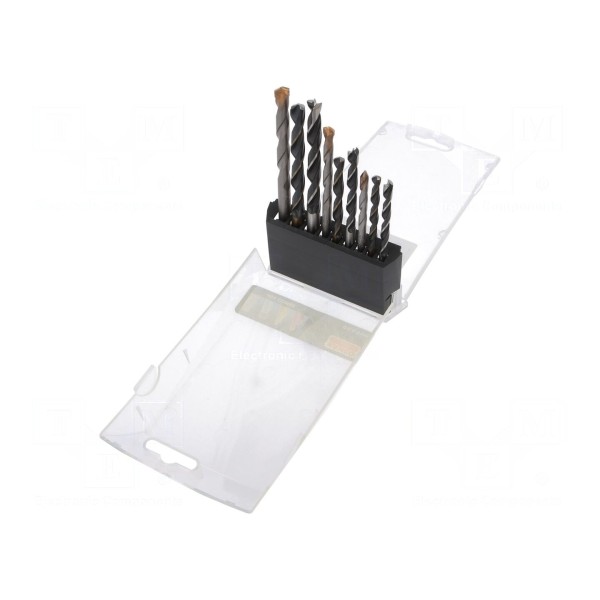 Zestaw wierteł do betonu, drewna i metalu, 9 sztuk