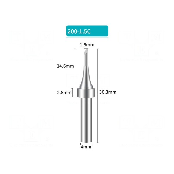 Grot do lutownic grzałkowych BAKON o kształcie kopytka jest przeznaczony do montażu w stacjach lutowniczych. Element charakteryzuje się wymiarem końcówki roboczej wynoszącym 1,5mm, co pozwala na precyzyjne operacje w trakcie prac lutowniczych.