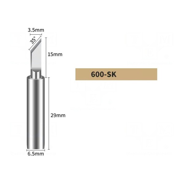 Grot przeznaczony do lutownic grzałkowych posiada końcówkę o kształcie noża. Element charakteryzuje się wymiarem 3,5mm.