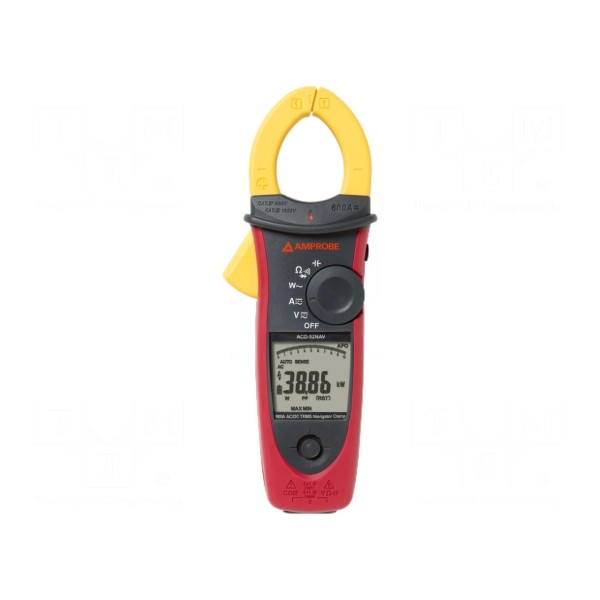Miernik wielofunkcyjny ACDC-52NAV realizuje pomiary prądu AC/DC w zakresach 100A i 600A oraz napięcia AC/DC do 1kV. Przyrząd obsługuje pomiary częstotliwości, harmonicznych, mocy, rezystancji, pojemności oraz współczynnika mocy. Zastosowana technologia True RMS zapewnia dokładność pomiarów napięcia AC na poziomie ±(1% + 5 digit) oraz napięcia DC ±(0,7% + 2 digit). Maksymalna średnica mierzonego przewodu wynosi 37 mm.