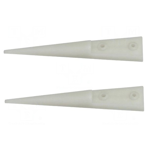 Produkt stanowi zestaw dwóch wymiennych końcówek przeznaczonych do pęset. Element charakteryzuje się prostym profilem zakończenia.