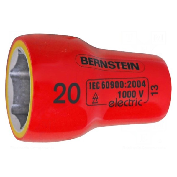 Nasadka izolowana typu 6-kątnego została zaprojektowana do prac w środowiskach wymagających ochrony przed porażeniem prądem elektrycznym. Element posiada gniazdo w rozmiarze HEX 20mm oraz uchwyt o średnicy 3/8".