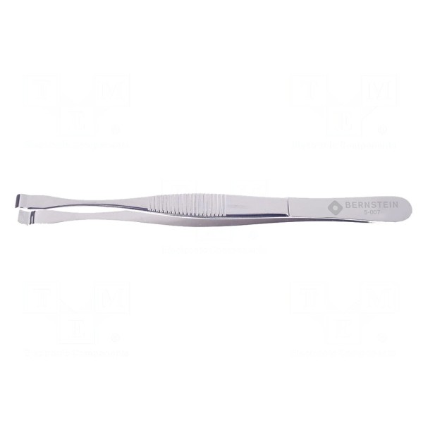 Pęseta o długości 145 mm charakteryzuje się prostą konstrukcją oraz okrągłym kształtem końcówki ostrza. Wykonana ze stali nierdzewnej, stanowi narzędzie o uniwersalnym przeznaczeniu.