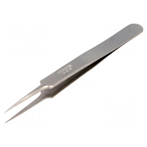Pęseta o długości 110 mm przeznaczona do prac precyzyjnych. Narzędzie zostało wykonane ze stali nierdzewnej, co zapewnia wysoką trwałość oraz odporność na działanie większości kwasów.