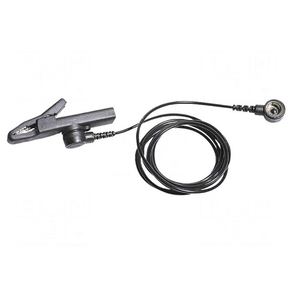 Produkt jest przeznaczony do podłączania mat antystatycznych oraz opasek ESD do punktu uziemienia. Konstrukcja przewodu zapewnia zgodność z normą EN 61340-5-1, co potwierdza jego parametry techniczne w zakresie ochrony przed ESD. Wykonany w czarnym kolorze, stanowi element niezbędny do utrzymania ciągłości uziemienia w stanowiskach pracy.