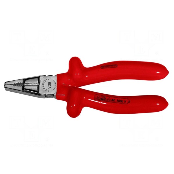 Szczypce uniwersalne BERNSTEIN 13-708-VDE to narzędzie o długości 205 mm, przeznaczone do prac wymagających ochrony izolacyjnej. Konstrukcja szczypiec została dostosowana do specyfiki prac elektroinstalacyjnych.