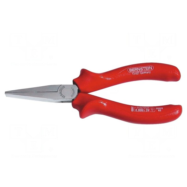 Szczypce płaskie BERNSTEIN przeznaczone są do prac wymagających zapewnienia izolacji elektrycznej. Narzędzie o długości 170 mm charakteryzuje się budową przystosowaną do chwytania i manipulowania elementami w miejscach o ograniczonym dostępie.