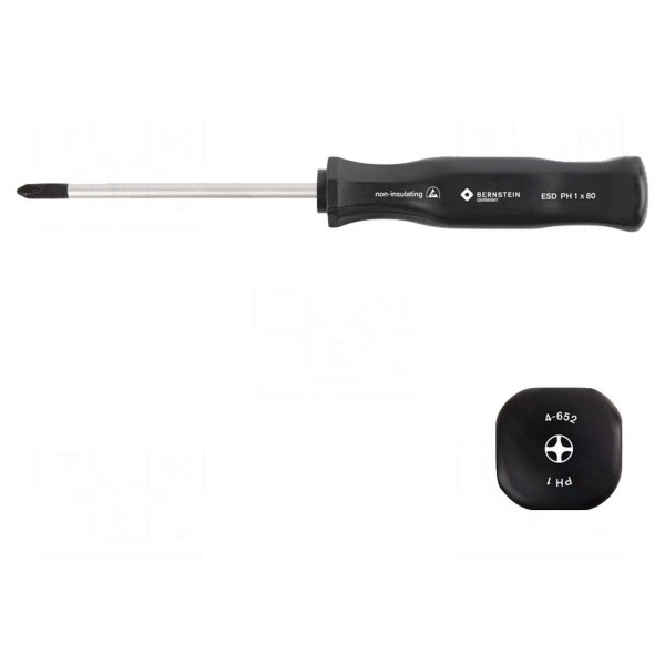 Wkrętak typu standardowego wyposażony w grot typu Phillips o rozmiarze PH1. Narzędzie posiada ostrze o długości 80 mm, przeznaczone do prac z wkrętami o odpowiednim gnieździe krzyżowym.