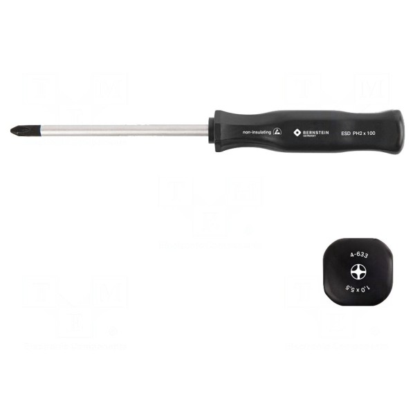 Wkrętak standardowy BERNSTEIN 4-653 wyposażony jest w grot typu Phillips w rozmiarze PH2. Narzędzie przeznaczone jest do prac montażowych oraz serwisowych wymagających obsługi wkrętów z gniazdem krzyżowym.