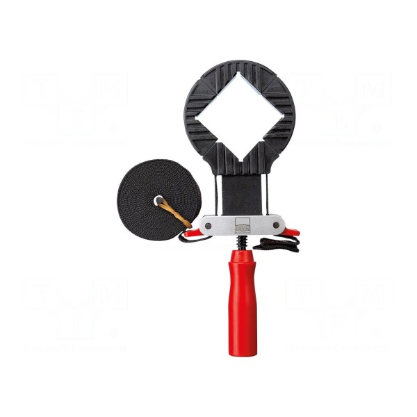Zacisk taśmowy służy do stabilnego mocowania elementów o różnych kształtach podczas prac montażowych. Konstrukcja narzędzia pozwala na równomierny docisk na całym obwodzie obrabianego przedmiotu.