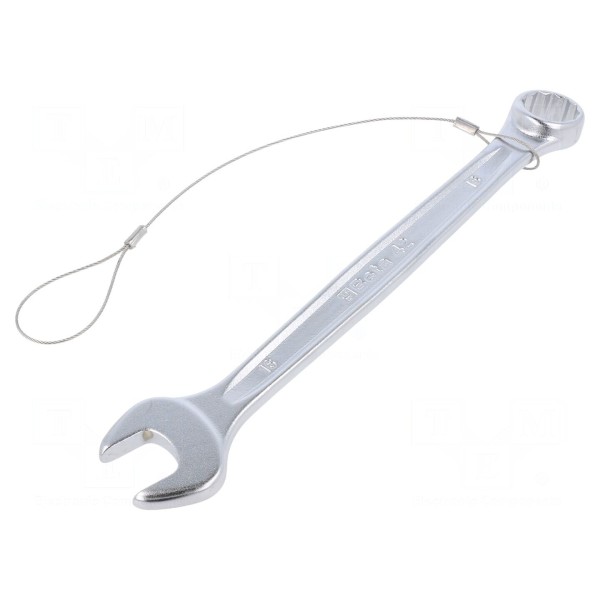 Model posiada główkę oczkową oraz płaską, obie odgięte pod kątem 15°. Całkowita długość klucza wynosi 201 mm, co pozwala na optymalne operowanie narzędziem w miejscach o ograniczonej przestrzeni roboczej.