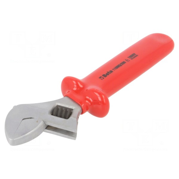 Klucz nastawny izolowany BETA 001100520 przeznaczony jest do prac w instalacjach elektrycznych. Narzędzie charakteryzuje się rozwarciem szczęk wynoszącym 28mm, co pozwala na obsługę elementów złącznych o zróżnicowanych średnicach.