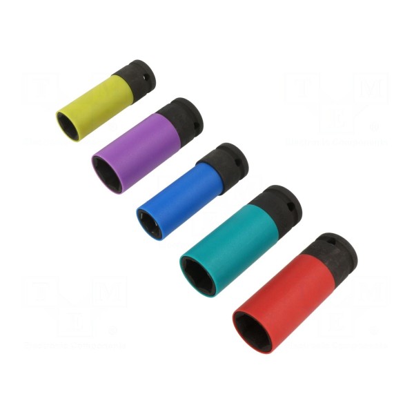 Zestaw 5 kluczy nasadowych udarowych 1/2", 17–24mmZestaw kluczy nasadowych BETA 720LC/S5 obejmuje 5 elementów o profilu 6-kątnym, przystosowanych do pracy udarowej. Narzędzia przeznaczone są do obsługi połączeń śrubowych z wykorzystaniem uchwytu o rozmiarze 1/2". W skład zestawu wchodzą nasadki o rozmiarach HEX 17mm, 19mm, 21mm, 22mm oraz 24mm. Akcesoria wykonane zostały ze stali, a ich zewnętrzna powierzchnia posiada pokrycie z polimeru.