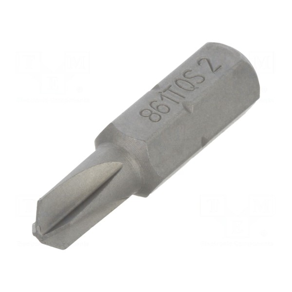 Końcówka wkrętakowa typu Torq-Set o rozmiarze grota TS2 przeznaczona jest do współpracy z uchwytami o gnieździe 1/4" (C6,3mm). Element posiada długość całkowitą wynoszącą 25mm.
