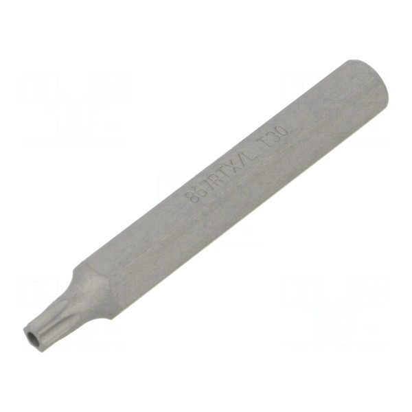 Końcówka wkrętakowa typu Torx z zabezpieczeniem w rozmiarze T30H przeznaczona jest do prac montażowych wymagających użycia odpowiedniego profilu śruby. Element posiada gniazdo uchwytu o rozmiarze 1/4" oraz standardowy typ mocowania E6,3mm.