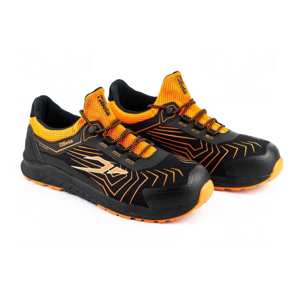 Półbuty ochronne w rozmiarze 45 charakteryzują się konstrukcją o obniżonej masie. Produkt utrzymany jest w kolorystyce pomarańczowo-czarnej.