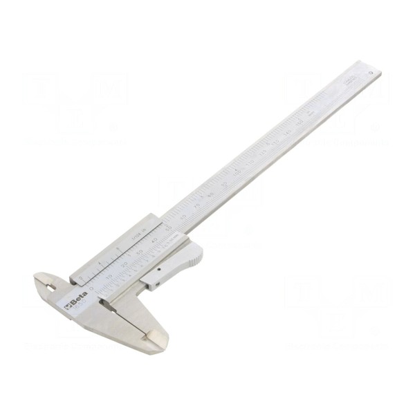 Suwmiarka BETA 1650/150 przeznaczona jest do precyzyjnych pomiarów liniowych w zakresie od 0 do 150 mm. Instrument wyposażony został w czytelną skalę analogową, która umożliwia odczyt wyników z dokładnością do 0,05 mm.