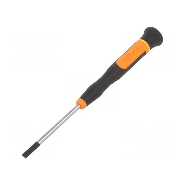 Wkrętak precyzyjny o płaskim grocie został zaprojektowany do prac wymagających dokładności. Wymiar końcówki roboczej wynosi 4x0,8mm, co umożliwia dopasowanie narzędzia do standardowych wkrętów o nacięciu płaskim.