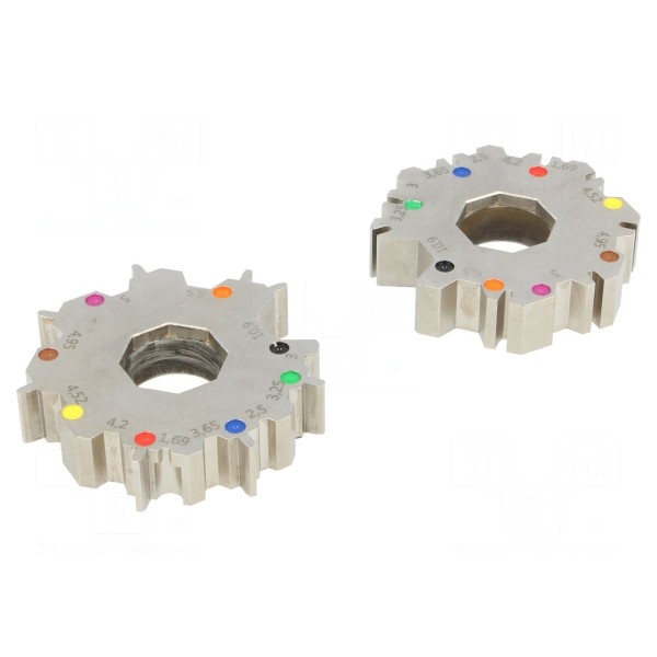 Powierzchnia elementu jest niklowana i polerowana, co chroni materiał przed korozją. Komponent jest przeznaczony do współpracy z zaciskarką typu MULTIBEX-MX1.