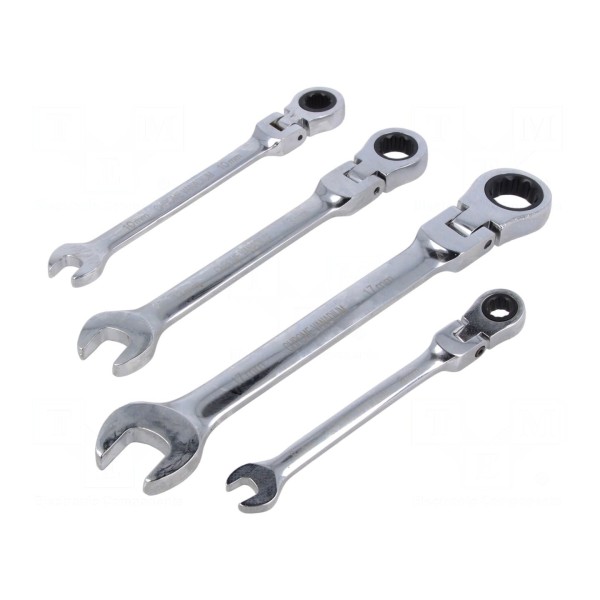 Zestaw kluczy płasko-oczkowych z grzechotką i przegubem, 4 sztuki