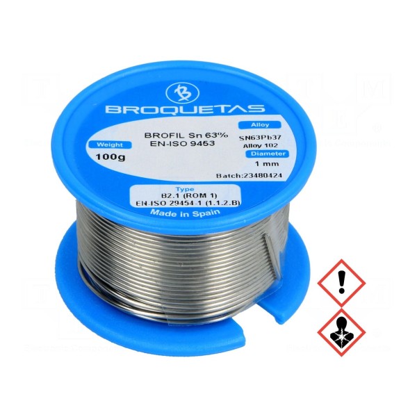 Spoiwo lutownicze ołowiowe w formie drutu o średnicy 1 mm przeznaczone do lutowania miękkiego w przemyśle elektronicznym. Stop Sn63Pb37 charakteryzuje się temperaturą topnienia wynoszącą 183°C. Produkt dostarczany jest na szpuli o masie 0,1 kg.