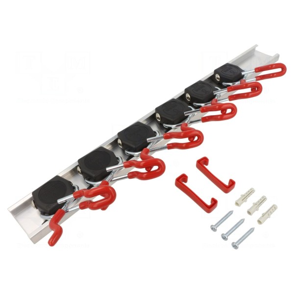Wieszak przeznaczony do organizacji narzędzi w miejscu pracy. Całkowita długość elementu wynosi 0,5m. Akcesorium umożliwia montaż i przechowywanie różnych narzędzi. Element zapewnia dostępność wyposażenia warsztatowego w uporządkowany sposób.