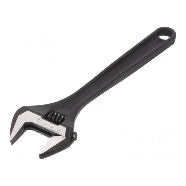 Klucz nastawny C.K T4366-300 to narzędzie ręczne o długości całkowitej wynoszącej 300 mm. Konstrukcja pozwala na regulację rozwarcia szczęk w zakresie do 38 mm, co umożliwia pracę z różnymi elementami złącznymi o zróżnicowanych wymiarach.